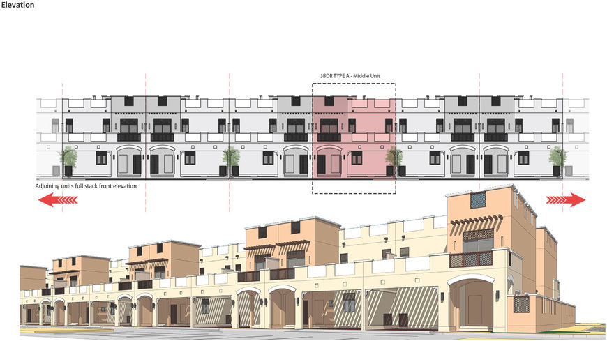 The project is the design and supervision of 450 townhouse units located in Kasaab A and Khasaab B Pre-cincts in the second phase of Wahat Al Zaweya’s Master Plan. Wahat Al Zaweya is an eco-friendly, self-sus-tainable, mixed – use community, spread out over 22.7 million sq.m in Al Faqaa corridor of Al Ain region. It is envisioned to be an ideal weekend getaway destination.